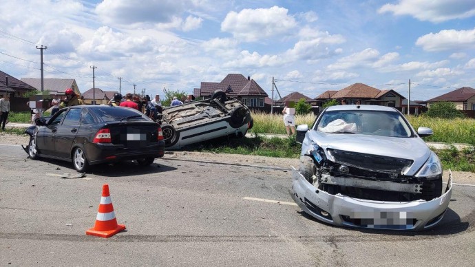По предварительным данным, водитель «Ниссана Теаны», выезжая со второстепенной дороги, не уступил движущейся со стороны станицы Переправной «Ладе Приоре». От удара отечественную легковушку отбросило на «Ладу Ларгус», которая ехала во встречном направлении. Последняя опрокинулась.