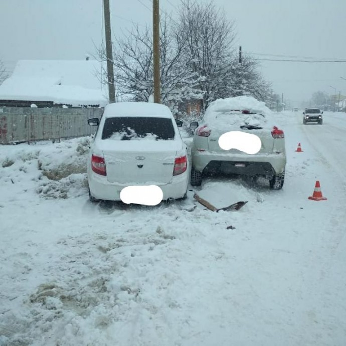 Две «Лады» ехали со стороны микрорайона фирмы «Юг». Первая начала поворачивать к магазину «Пульсар», а вторая пошла на обгон. В итоге на заснеженной дороге автомобилисты не справились с управлением и оба оказались в куче со снегом.