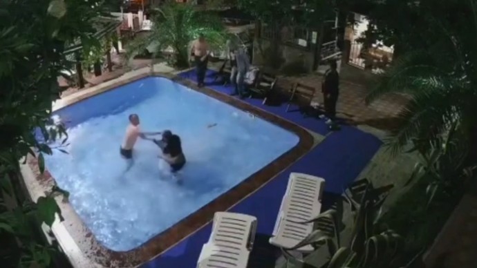 Владелец гостевого дома в Сочи вместе с приятелями избил спорившего с ним постояльца, после чего едва не утопил его в бассейне. Противостояние зафиксировала камера наблюдения.