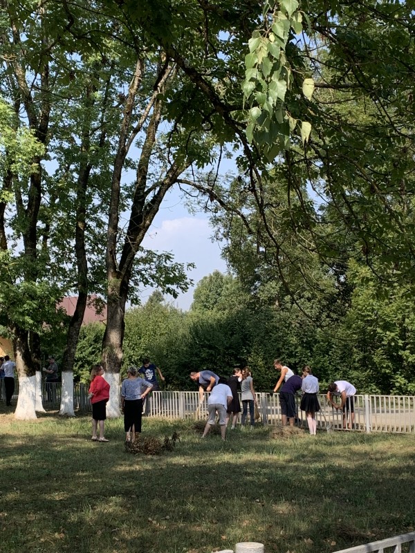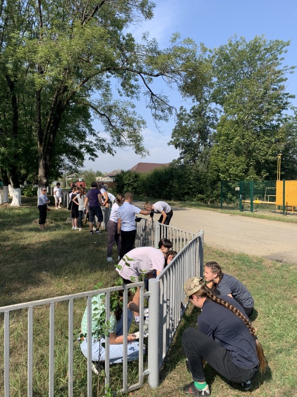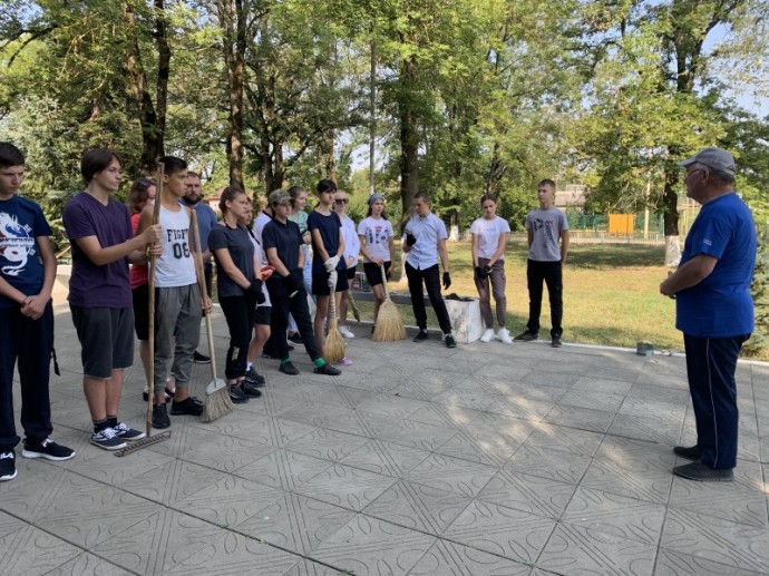 После подготовительного этапа началась практическая реализация проекта. 2 сентября 2022 года в станице Махошевской на мемориальном комплексе был организован трудовой десант, в котором приняли участие учащиеся СОШ №15 и ветераны. Проведена уборка территории ичастичная покраска ограждения.